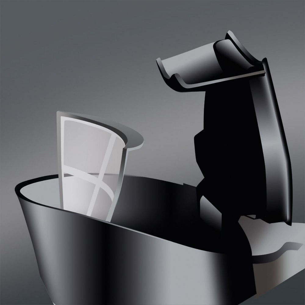 Espacio de almacenamiento para el cable, Fácil de limpiar, Filtro de caliza lavable, Piloto de luz para encender y apagar (en ambos lados)