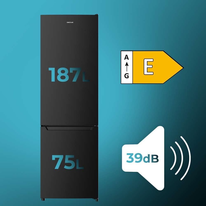 Frigorífico Combinado Negro 262 L Clasificación E 2 puertas Cecotec 262