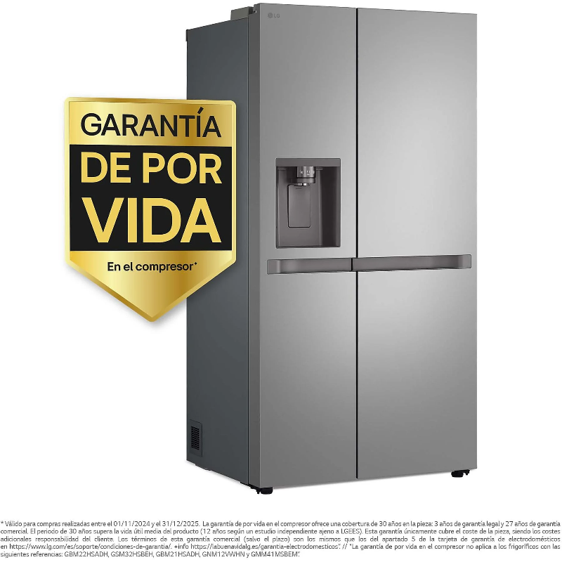 Frigorífico americano LG GSLC41PYPE con capacidad total de 641 L. Sistema No Frost (descongelación automática) para funcionamiento sin necesidad de descongelación manual. Configuración tipo americano/side-by-side, con dos zonas internas diferenciadas para refrigeración y congelación en un único equipo. Denominación del modelo: GSLC41PYPE. Clasificación del producto: electrodoméstico de refrigeración de gran capacidad para conservación de alimentos a baja temperatura mediante un sistema de refrigeración con circulación de aire y control de temperatura integrado en el aparato. Capacidad indicada: 641 litros (volumen interno total).
