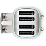La tostadora Smeg TSF03PGEU es un modelo de 2000 W con 4 ranuras y 2 paneles de control independientes. Cada panel incorpora selector con 6 niveles de tostado, palanca de activación y controles para las funciones de recalentado, descongelación y bagel. El sistema de centrado automático mantiene las rebanadas en posición durante el funcionamiento y la expulsión automática eleva el pan al finalizar el ciclo. Incluye 2 bandejas recogemigas extraíbles para la limpieza del interior. La estructura integra cuerpo de acero, mandos y palancas de acero inoxidable, base con pies antideslizantes y compartimento para el cable. Funciona con alimentación de 220-240 V y frecuencia de 50/60 Hz. Su configuración admite el uso independiente de cada par de ranuras y el tostado simultáneo de hasta 4 rebanadas.